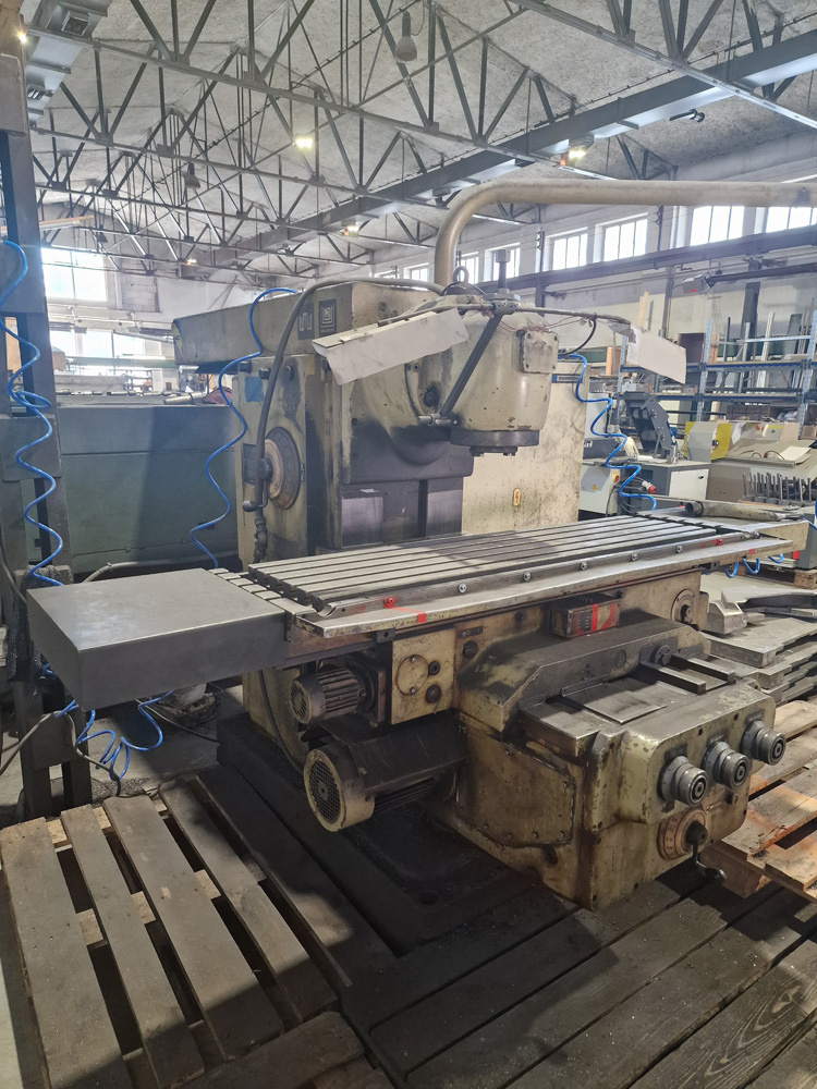 Frezarka pozioma FGH 32 TOS Ołomuniec - [24.1. 2026]Sprzedajemy konsolową frezarkę poziomą FGH 32 z głowicą frezarską pionową, producent TOS Ołomuniec, rok produkcji 1983, z głowicą pionową, z 1 szt. łożyskiem podporowym do frezowania poziomego, dokumentacja. Parametry techniczne: stożek wrzeciona ISO 50, wymiary stołu (dł. x szer.) 1250 x 320 mm, ru ...