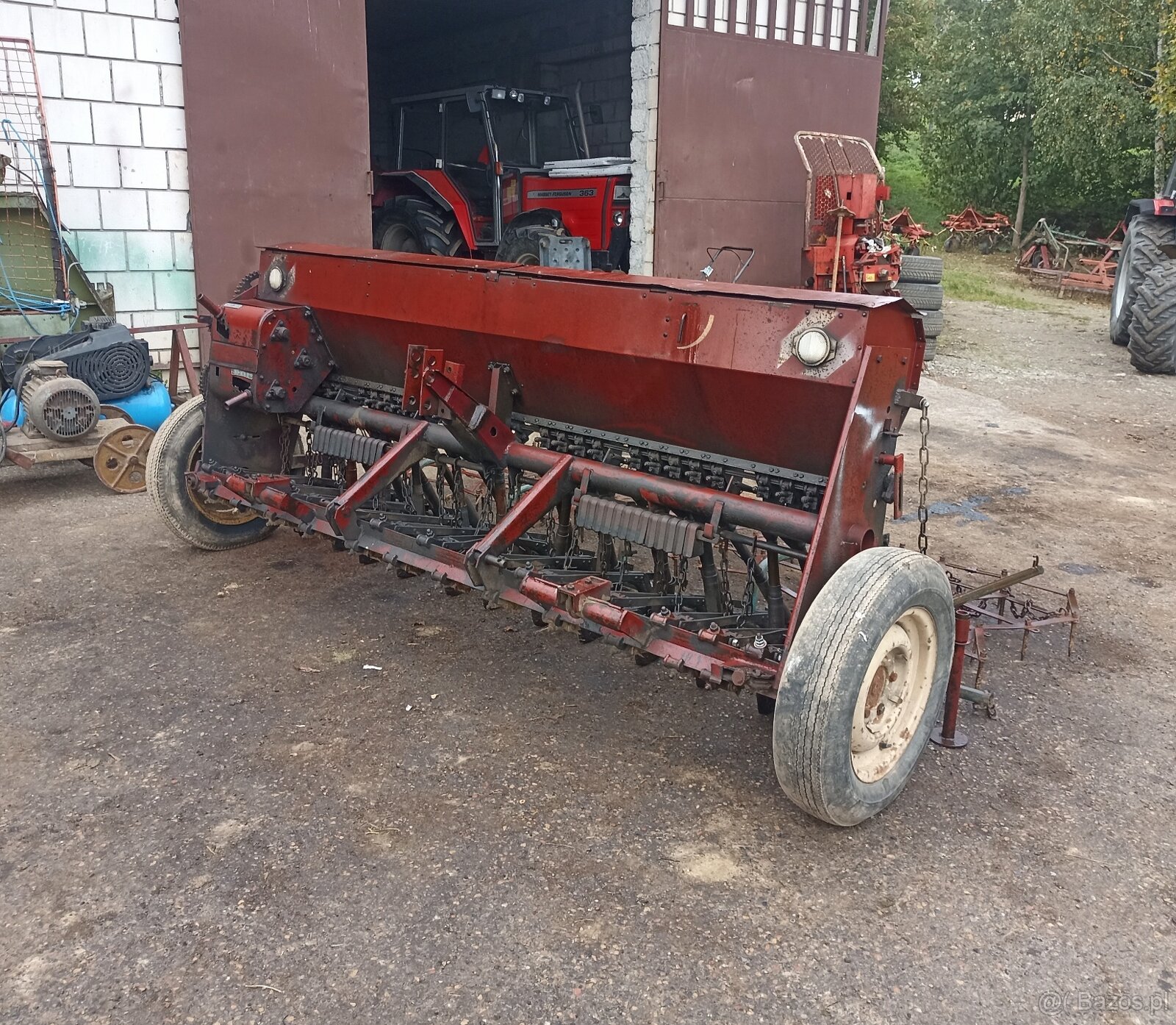 Siewnik zbożowy Poznaniak na wąskim kole - [1.3. 2026]Siewnik zbożowy Poznaniak na docisku oraz wąskim kole, w komplecie ze znacznikami, pazurami, rynienkami oraz grabkami. Stan bardzo dobry.