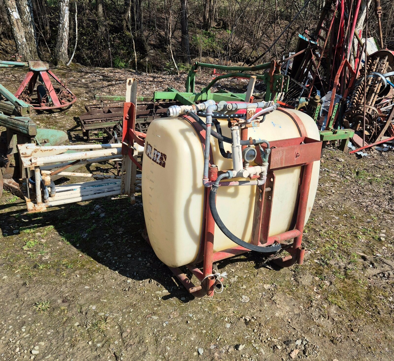 Opryskiwacz zawieszany niemieckiej firmy Platz o pojemności 300 litrów i szerokości roboczej 10 metrów. Uszkodzona pompa.